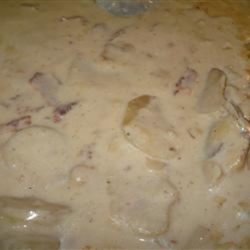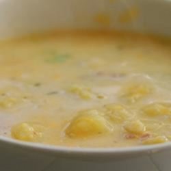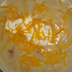 "A wonderful potato soup. You can add a variety of items to this recipe. What ever you have in your kitchen. If desired, mash the sliced potatoes for a creamier texture."