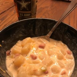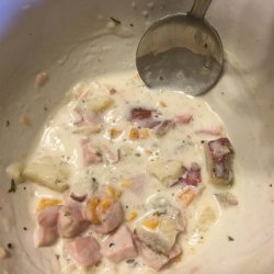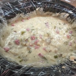 3Mash potatoes in the slow cooker to your desired thickness and consistency; stir in cream cheese and cooked ham. Simmer soup until cream cheese has melted, soup is thick and creamy, and ham is heated through, 30 minutes to 1 hour.