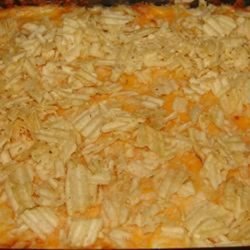 2In a large casserole dish, mix the chicken, mayonnaise, sour cream, condensed cream of chicken soup, rice, almonds, and mozzarella cheese. Layer with Cheddar cheese, and top with potato chips.