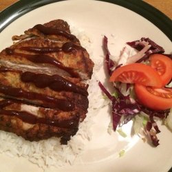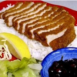 2Rinse pork chops with water, then dip in the egg mixture. Coat with panko crumbs, dip in the egg mixture again, then coat with another layer of panko crumbs. Lay coated chops on a plate until the rest are finished. If you have time, let them set for about 10 minutes, and the coating will set very well. If you wish to freeze the chops, now is the time.