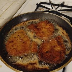 1In a medium bowl, mix together the eggs, milk, garlic, salt and pepper. Heat oil in a large heavy skillet over medium-high heat. Place the panko crumbs in a shallow bowl.