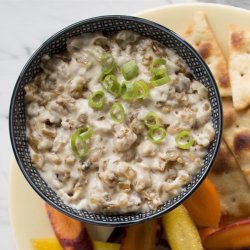 3Fold caramelized onions into tangy creamy cheese with a rubber spatula. Season with salt and pepper, and sprinkle with green onions.