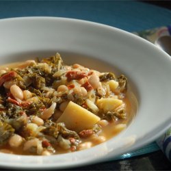 3Stir in cabbage, kale, potatoes and enough hot water to cover. Cook until potatoes are tender, 20 minutes. Season with salt and pepper.