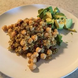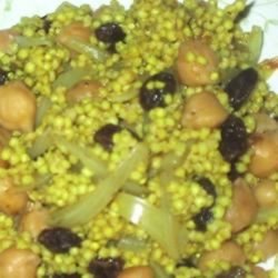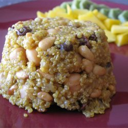 2Once the quinoa has finished cooking, stir in the drained garbanzo beans, toasted pine nuts, and raisins. Serve warm or cold.