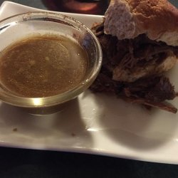 3Remove brisket to a cutting board and cut into slices. Fill rolls with beef. Ladle juices from slow cooker into 5 individual bowls to serve with the sandwiches for dipping.