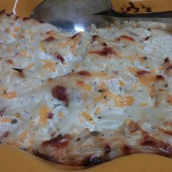 Combine hash browns, sour cream, Cheddar cheese, bacon bits, and ranch dressing mix in a bowl; stir until mixed. Pour into a 9x12-inch baking pan.