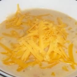 4Heat soup just to boiling. Beat the egg yolk with the heavy cream in a small bowl. Stir in 1/2 cup hot soup, stir yolk mixture back into sauce pan. Gently heat soup, but do not boil. Garnish with shredded cheddar cheese.