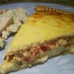 3Spread bottom of pie crust with Monterey Jack cheese. Top cheese with pepper and onion mixture. Mix eggs and milk in a bowl; evenly pour over onion and pepper mixture. Top with Cheddar cheese.