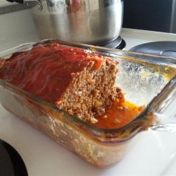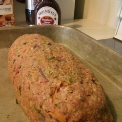 3Mix ground beef, sausage, vegetable mixture, bread crumbs, parsley, and eggs in a large bowl; form into a loaf and place in a rectangular baking pan with 2-inch high sides. Cover loaf with remaining 1/3 cup ketchup.
