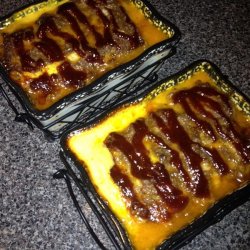 2Mix ground beef, 1/2 cup barbeque sauce, milk, egg, bacon bits, Worcestershire sauce, salt, and black pepper in a bowl; stir in bread crumbs to desired consistency. Place half the ground beef mixture into the prepared loaf pan and press an indentation into the meat mixture, leaving a 1-inch rim of meat all around the indentation. Fill the indentation with processed cheese and top with remaining meat mixture. Press lightly to seal. Brush 2 tablespoons barbeque sauce over the meatloaf.
