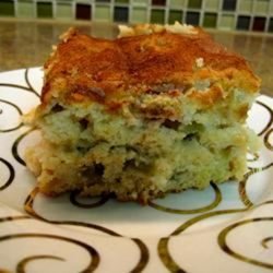Blend together 1/4 cup butter or margarine, cinnamon, and brown sugar; sprinkle evenly over batter.