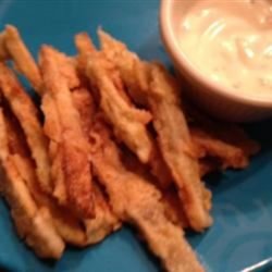 1In a shallow bowl, stir together the flour, cornmeal, cayenne pepper, salt, and black pepper. Place the eggs in a separate bowl.