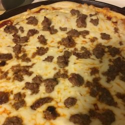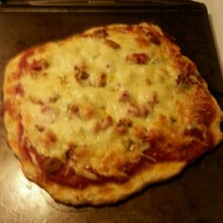 2Pat dough into pan or on to a pizza stone using fingers dipped in olive oil. If desired sprinkle basil, thyme or other seasonings on crust. Top with your favorite pizza toppings and bake for 15 to 20 minutes in a preheated 425 degree oven.