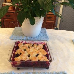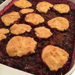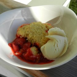 4In a small bowl, mix the milk and egg. Add all at once to dry ingredients, stirring just to moisten. Drop by teaspoonfuls on top of the rhubarb mixture. Sprinkle with sugar.