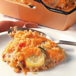 "My great-aunt made this for a family gathering and it's been a hit ever since, even with the kids! The water chestnuts add a different texture and my husband has even used whole baby carrots instead of shredded carrot. Easy and fast to make and a good way to use up all that squash from the garden!"