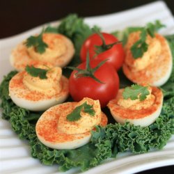 2Cut the eggs in half lengthwise. Place the egg yolks in a mixing bowl, and set the whites aside. Mash the yolks with the cream cheese and mayonnaise until thoroughly blended. Fill the egg white halves with the egg yolk mixture using a spoon. Sprinkle with paprika. Refrigerate until ready to serve.