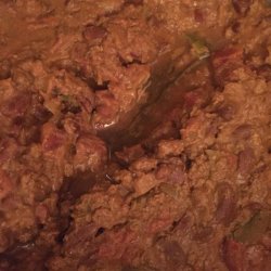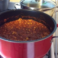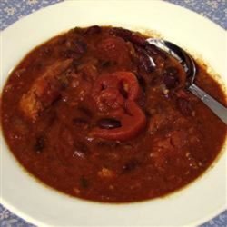 "This a very hearty and spicy chili, one I believe all will love! Serve topped with Cheddar cheese."