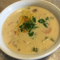 1Melt butter in a large pot over medium heat. Saute onion, celery, and garlic powder until onions are tender. Stir in potatoes, carrots, broth, salt, pepper, and dill. Bring to a boil, and reduce heat. Cover, and simmer 20 minutes.