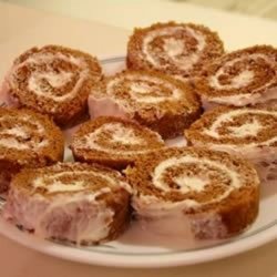 6When the cake is completely cooled, unroll cake and spread with cream cheese filling and roll up again without the towel. Wrap with plastic wrap. Refrigerate until ready to serve. Sprinkle with confectioners sugar and slice into 12-15 servings.