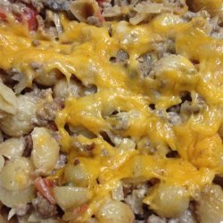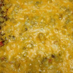 "This is a very easy casserole using basic ingredients. It has been a big hit with my family. It's simple to make and consists of ground beef, spaghetti, tomatoes, and spices - all baked together and topped with cheese."