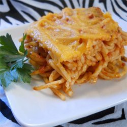 4Pour mixture into a 9x13 inch baking dish. On top of mixture, layer pasta and then sprinkle on cheese. Bake in preheated oven until cheese is melted.