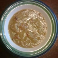 "This is a good way to use leftover ham, quite inexpensive, and VERY tasty. I hope that you enjoy it. Some people like to add carrots or other types of vegetables. Don't forget to serve with buttered bread toasted in the oven."