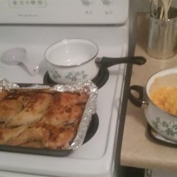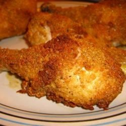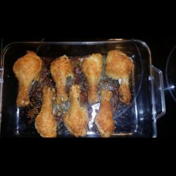 2Place melted butter or margarine in a shallow dish or bowl, then place potato flakes in a separate shallow dish or bowl. Roll chicken pieces in butter or margarine, then in potato flakes. Place coated chicken pieces in a 9x13 inch baking dish, skin side up.
