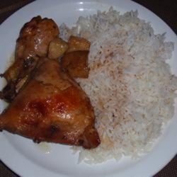 2Rub the chicken legs thoroughly with the vegetable oil. Poke several holes in the flesh of the chicken legs with a fork; arrange in a single layer in a glass dish. Pour the marinade over the chicken legs; marinate in refrigerator for 1 hour.