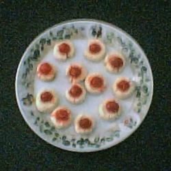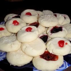 4Variations: Flatten some balls with tines of fork and press 1/4 of a red or green glace cherry in center of each. Make thumbprint indentation in some balls and fill with a tiny bit of jam, jelly or marmalade. Dip some balls in slightly beaten egg white and roll in finely chopped walnuts. Bake as they are or make an indentation in top and spoon in a little jam or marmalade. Dip some balls in egg white and roll in desiccated coconut. Bake as they are or make an indentation and spoon in a little jam, jelly or marmalade.