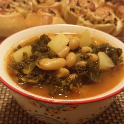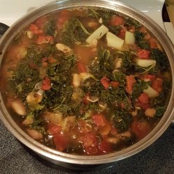 "This wonderful soup will warm your insides, delight your taste buds, and fill your stomach on a cold winter's night. It is full of dark green kale, potatoes, and cannellini beans."