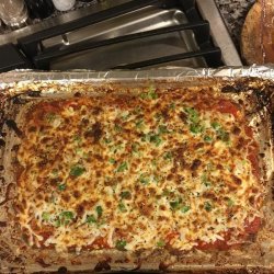 "For people that are gluten-intolerant, low-carb, paleo, or whatever, it can be hard to go without pizza. This dish makes it a lot easier. It is made pretty much exactly the same as pizza, but with ground beef as the crust. Sounds weird at first, but it is absolutely delicious and very filling. This is something great to make ahead of time and then eat as leftovers later on. It's great hot or cold, just like pizza! I find that if you make 6 square slices, each slice is usually more than enough to fill you up.