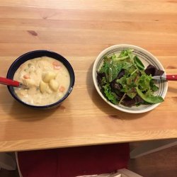 "This potato soup has more flavor than any potato soup I have ever had. It is a bit salty due to the bouillon cubes but you can add more milk to dilute if you find it necessary. For less creamy and lower fat, use whole milk instead of half-and-half -- still tastes great!"