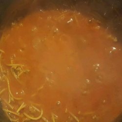 3Cook until spaghetti is tender, approximately 20 to 25 minutes. Stir occasionally to keep from sticking to pan and from noodles sticking together. Add water, 1/2 to 1 cup, if it starts to dry out and noodles are not cooked.