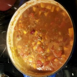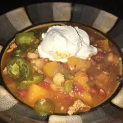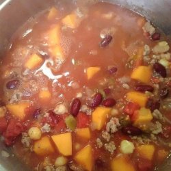 2Add the butternut squash, chicken broth, green chilies, tomatoes, kidney beans, hominy, and tomato sauce; season with chili powder, cumin, and garlic salt. Bring to a simmer, then reduce heat to medium-low, cover, and simmer until the squash is tender, about 20 minutes.