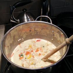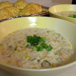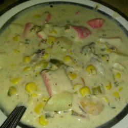 1Place 1/2 cup milk, cream cheese, and garlic in a large pot over low heat. Cook and stir until blended. Mix in soup, green onions, carrots, corn with liquid, potatoes, parsley, and remaining milk. Season with black pepper and cayenne pepper. Simmer 25 minutes. Do not boil.
