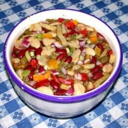 "This is a very tasty and easy bean salad made with four kinds of beans, red onion, and celery in a vinegar dressing. My friend next door gave it to me years ago."