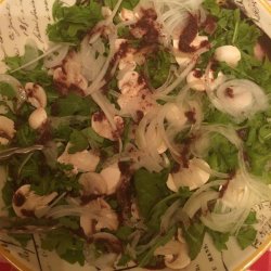 1Wash and dry arugula leaves. Arrange leaves on a large plate and layer with onions, mushrooms and tomato.