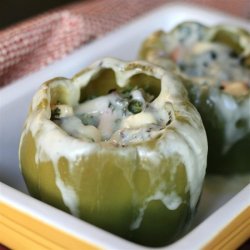 4Bake peppers in preheated oven until soft, 30 to 40 minutes. Top each pepper with a half-slice of cheese and continue cooking until cheese melts, about 5 minutes.