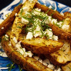 4Crumble feta cheese over potatoes; sprinkle with mint.