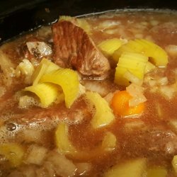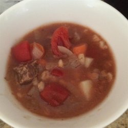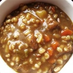 "The best beef barley soup. Thickens with just the barley. Tastes best in the slow cooker. Serve topped with parmesan cheese and with a salad."