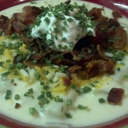 3Stir in the potatoes and onion, and cook for 5 more minutes. Stir in the sour cream and Cheddar cheese until melted and well blended. Season with salt and pepper.