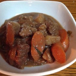 2Heat the vegetable oil in a large Dutch oven over medium-high heat until very hot, and brown the meat in 2 batches, stirring to brown the cubes on all sides. Return all the meat to the Dutch oven, sprinkle with flour, and stir lightly to coat the meat with flour. Stir in onion, carrots, dark beer, bay leaves, thyme, 1 teaspoon salt, 1/2 teaspoon pepper, garlic, and Worcestershire sauce. Bring the mixture to a boil, and cover.