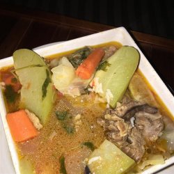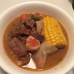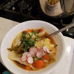 "This is an extremely hearty and satisfying soup. The hind shank flavors the broth beautifully as does the marrow in the bones. Garnish with slivered raw onion, lime juice, jalapenos, and more cilantro."