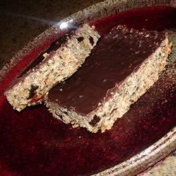 "This is not a traditional bar recipe. It can be made with all organic ingredients if you choose. It is packed with healthy ingredients that you are sure to enjoy. All my children comment, 'Mom, I love these things.' These are great for camping, sporting events, or anytime when you need that extra kick of energy topped with chocolate."