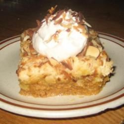 2Whisk the pumpkin, evaporated milk, brown sugar, eggs, and pumpkin pie space together in a bowl. Pour into the prepared pan. Scatter the cake mix over the top of the pumpkin mixture; sprinkle the nuts over the cake mix. Drizzle the melted butter over the entire cake.