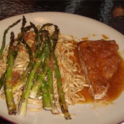 3Slice the tuna across the grain. Fan the slices out onto a place and drizzle with blood orange sauce.