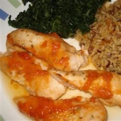 2Place the chicken breasts in a 9x13 inch baking dish. Sprinkle with salt. Combine the apricot preserves, vinegar and brown sugar. Pour the preserve mixture over the chicken, cover, and bake for 50 minutes.