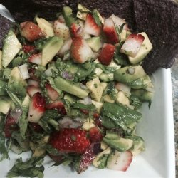 1In a serving bowl, lightly mix together the strawberries, avocado, red onion, jalapeno pepper, cilantro, lime juice, and black pepper. Serve immediately.