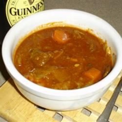 2Return beef to the pot, and stir in tomato paste, beef broth, and beer. Add potatoes and carrots, cover, and simmer over low heat for about 1 hour. Mix together the cornstarch and cold water. Stir into the stew, and simmer until thickened. Sprinkle with parsley and serve.