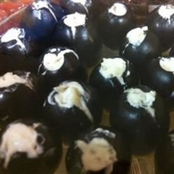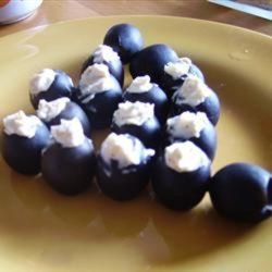 Using a butter knife, simply fill each olive with the desired amount of cream cheese. Serve on a decorative plate!